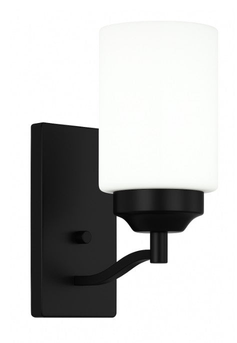 Vanity Light , 1 Light , Cylindrical White Glass , Matte Black