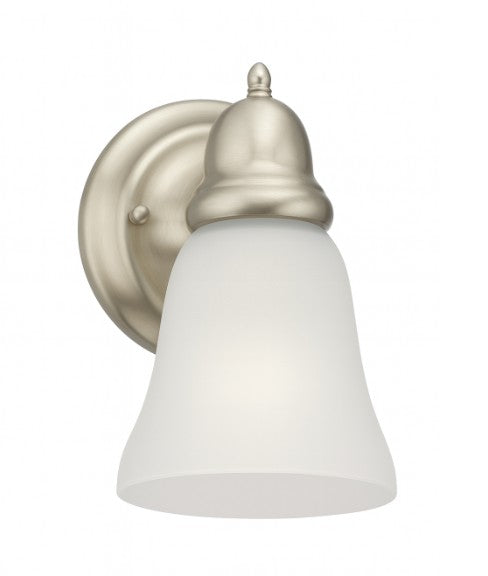 Vanity Light , 1 Light , Frosted Bell Glass Shade , Brushed Nickel
